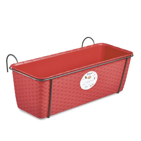 Jardinera balconera Natural con soporte de metal antracita con reserva de agua para un riego correcto de flores y plantas.