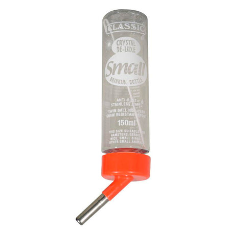 Bebedero Bubimex de 150 ml práctico e higiénico, con boquilla antigoteo y bola de acero inoxidable. Mantiene el agua limpia y fresca, ideal para hámsteres, jerbos, ratones, pájaros pequeños y otros animales pequeños en jaula.
