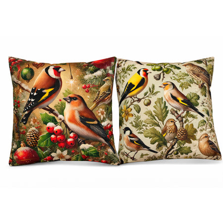 Cojín Decorativo Reversible 45x45 cm – Diseño de Pájaros Realistas y Estilo Natural | Funda con Cremallera Oculta y Lavable