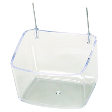 Comedero para loros pequeños y medianos, fabricado en plástico transparente. Con lados altos, especialmente diseñado para loros.