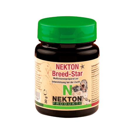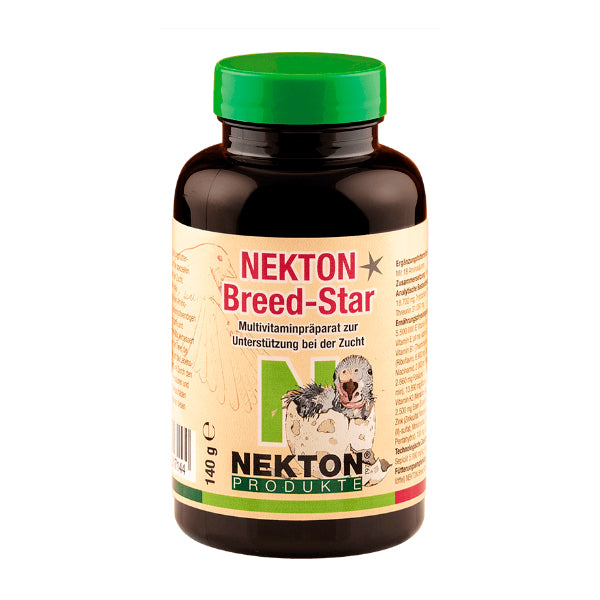 Nekton Breed-Star es un suplemento premium para aves especialmente formulado para preparación y época de cría. Aporta vitamina E en alta concentración, además de 18 aminoácidos esenciales, vitaminas, minerales y oligoelementos. Favorece la fertilidad, la calidad del huevo, la incubabilidad, el desarrollo embrionario y fortalece el sistema inmune. Se recomienda empezar 3 semanas antes de la reproducción y suspender cuando la hembra empieza la incubación.