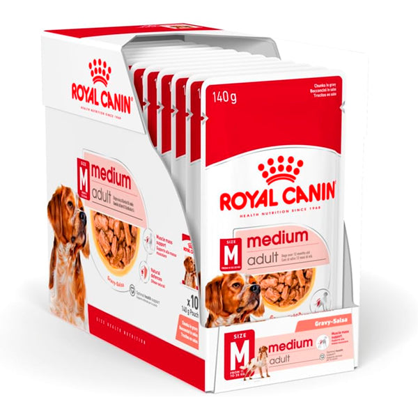 Royal Canin Medium Adult: Comida Húmeda Especial para Perros Adultos Medianos, Pack de 10 Sobres de 140g