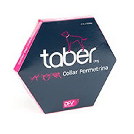 Taber collar Permetrina elimina pulgas, garrapatas y piojos y tiene efecto repelente frente a mosquitos. Resistente al agua, la cantidad de permetrina asegura una protección eficaz durante 4 meses. Varios tamaños según raza perro. Uso en perros.
